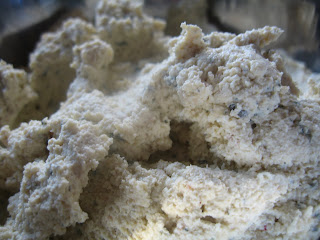 In a food processor combine 3/4cup cashew pieces, the juice of one lemon,1clove of garlic, and 3tblsp olive oil. Blend until creamy. Add one pound of crumbled tofu, 3 large tblsp dried basil, and salt and pepper to taste. Blend until smooth, taste and adjust seasonings as you like.